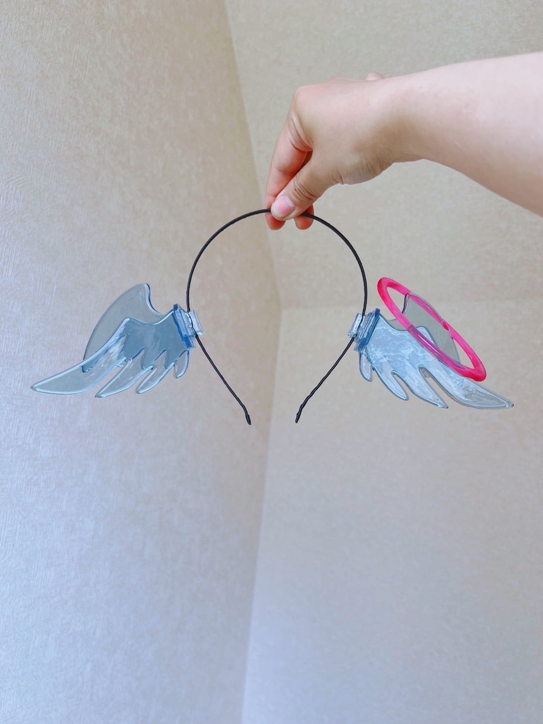 天使の羽 薄い青い羽×蛍光ピンクの輪