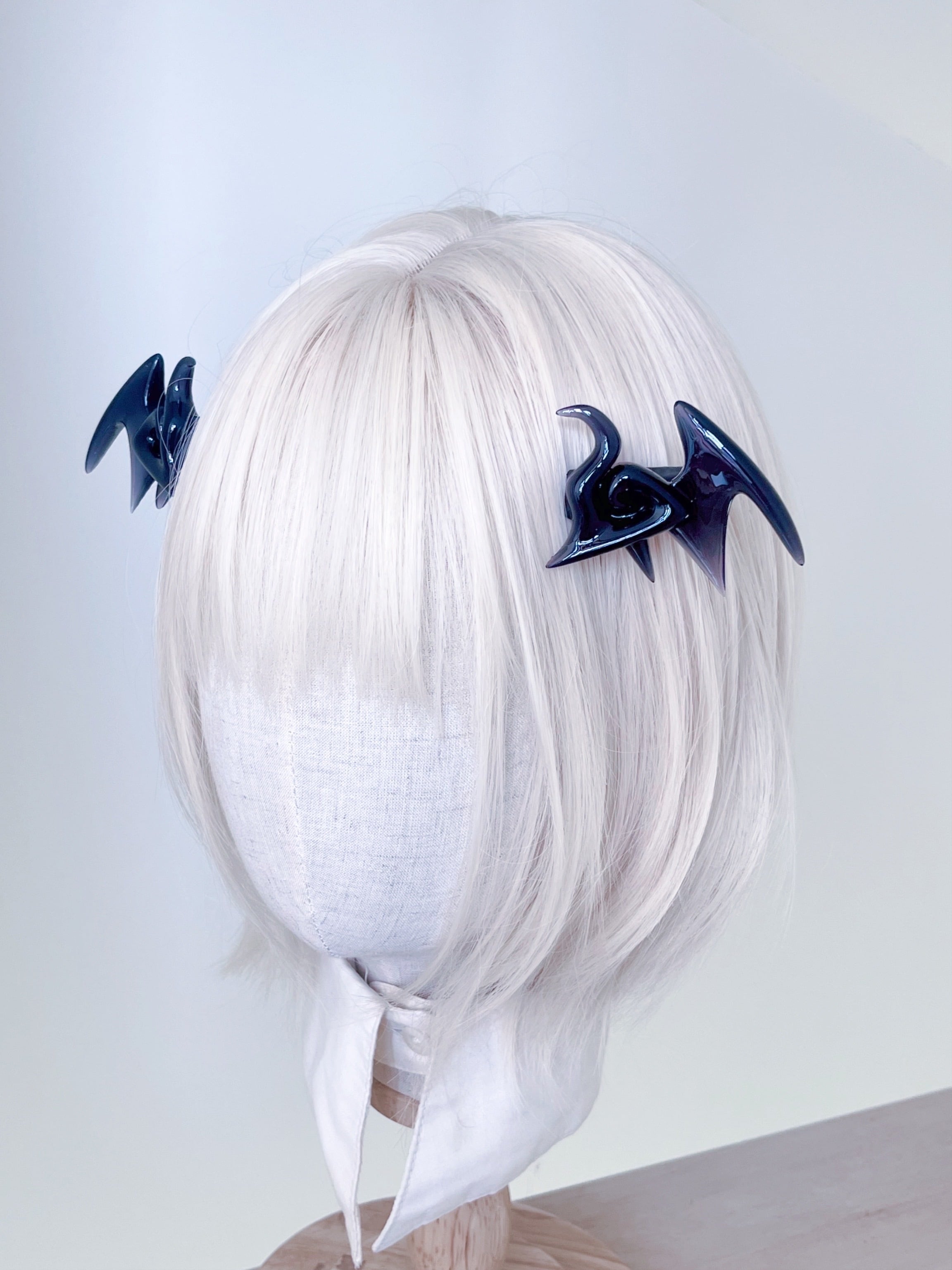 前を向いてくれる悪魔の羽クリップ 左右1セット 曇りガラス加工の黒