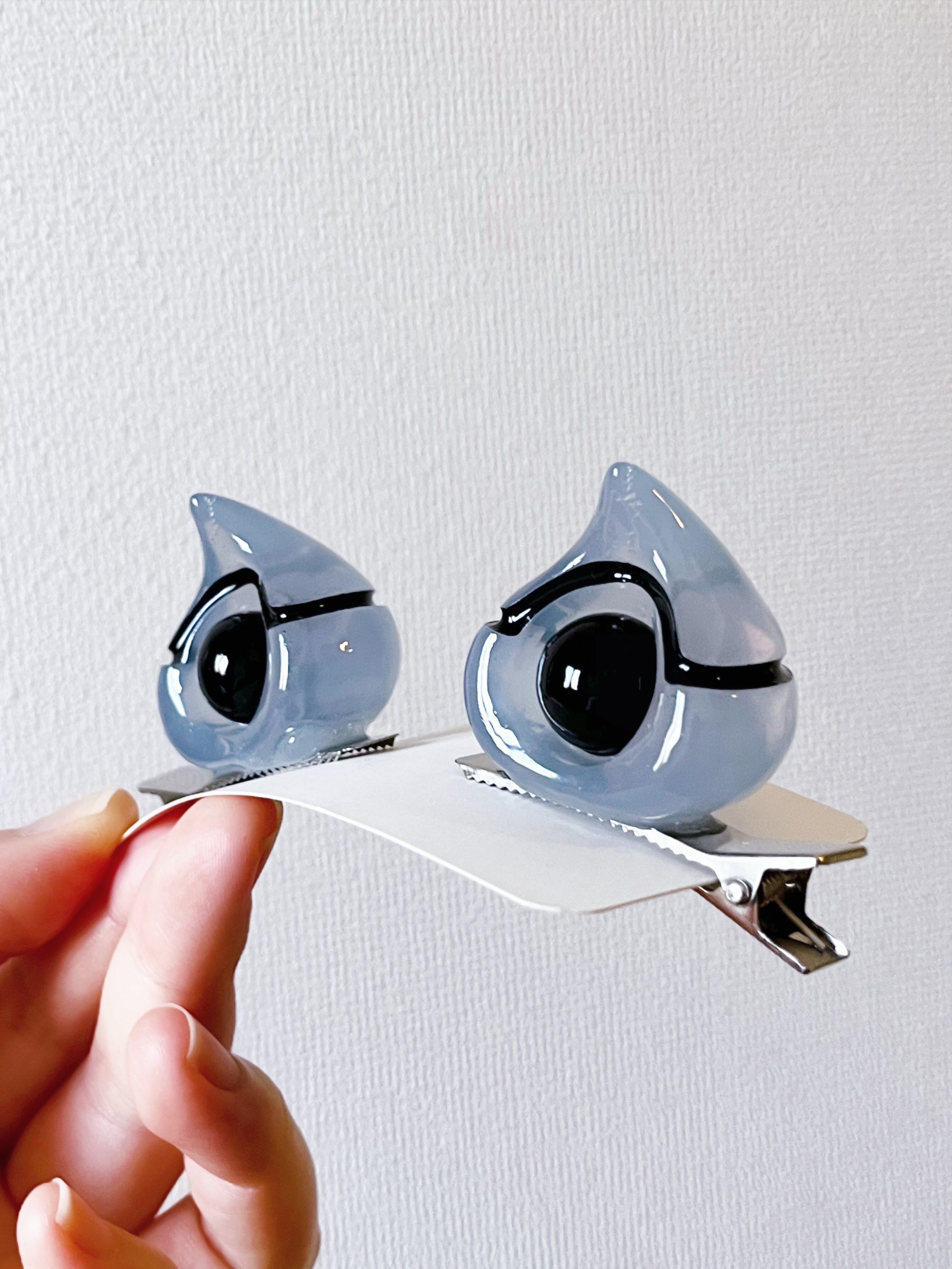 子猫型プラグクリップ 乳白透明×黒い玉×黒い線