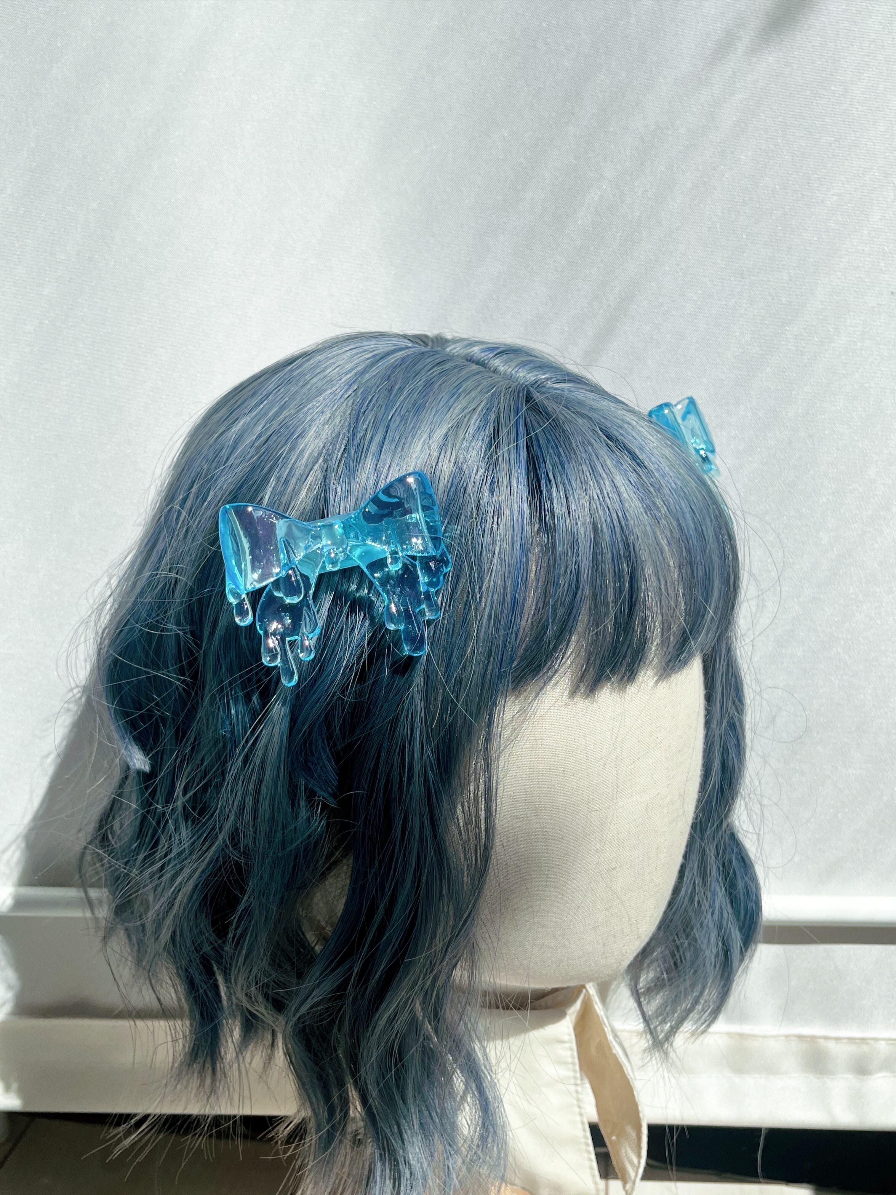前を向いてくれるトロトロに溶けたリボンクリップ つやつや水色