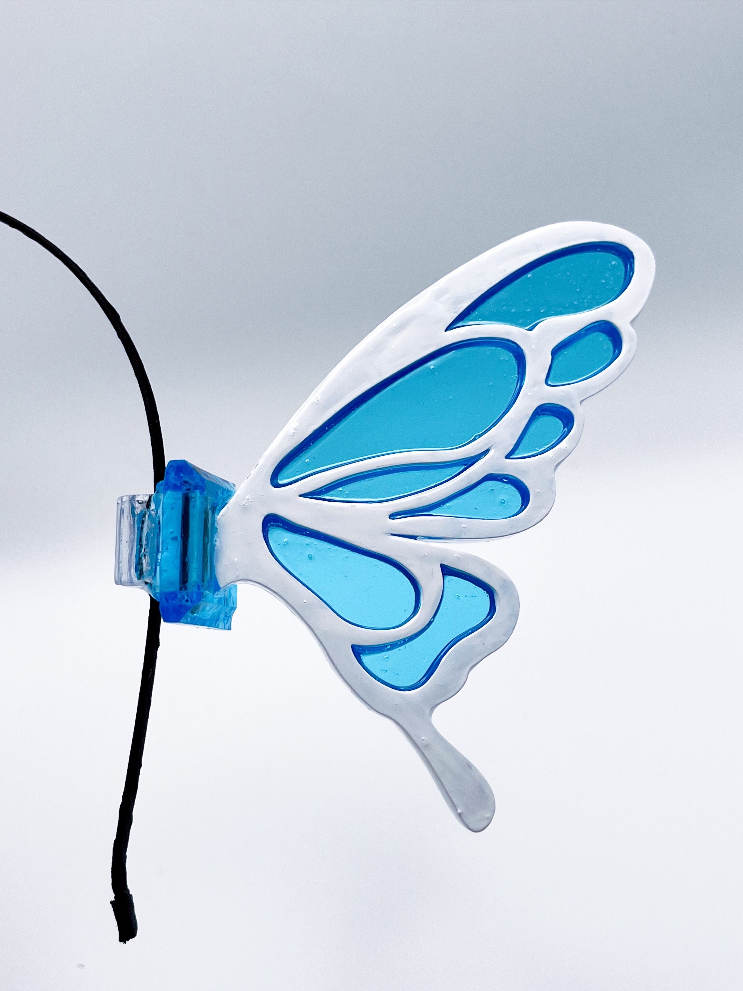 ひみつコラボ 蝶々のカチューシャ 白水色