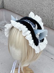 oyasumiコラボ 白ベルベットフリル×黒いファー×銀のツノ
