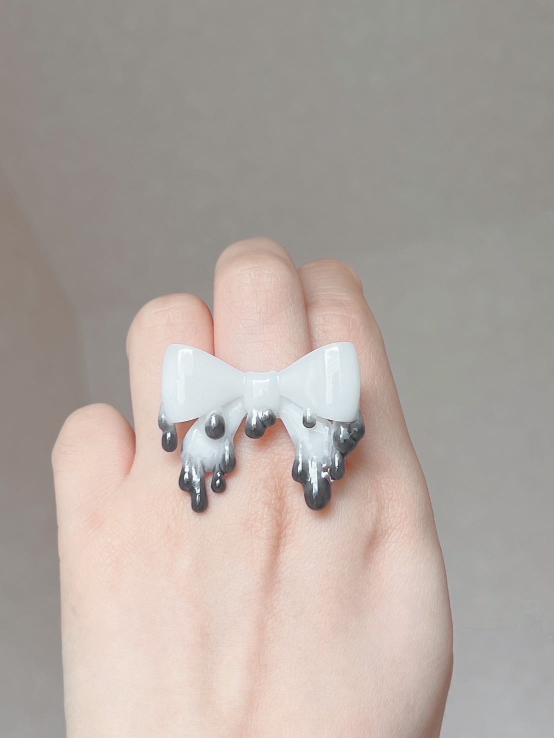 トロトロに溶けたリボンリング ホワイト×黒グラデ
