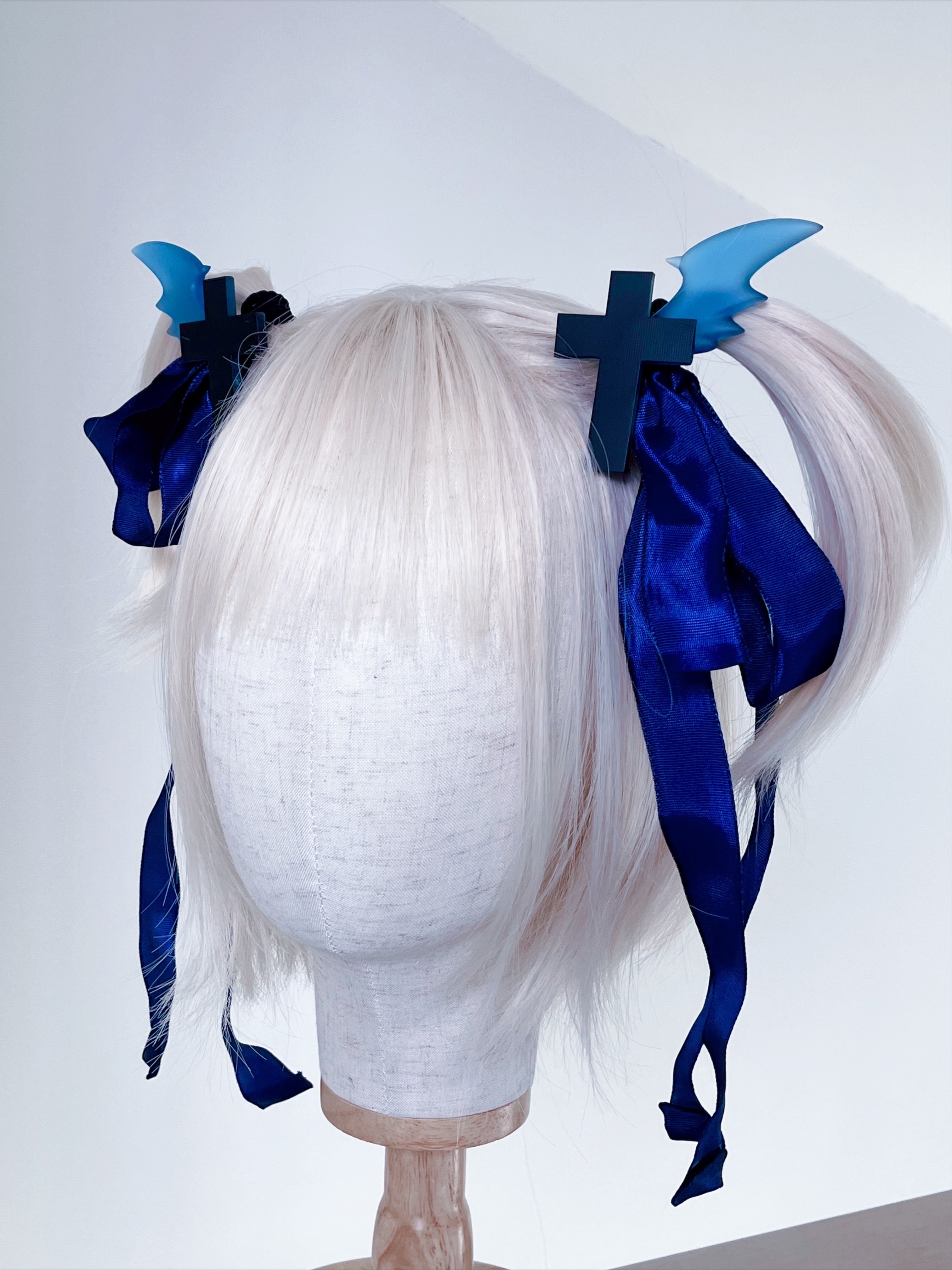 あの頃の小悪魔ヒロインヘアゴム 黒い十字架×水色の羽×青いリボン