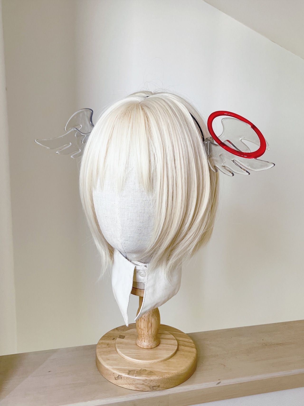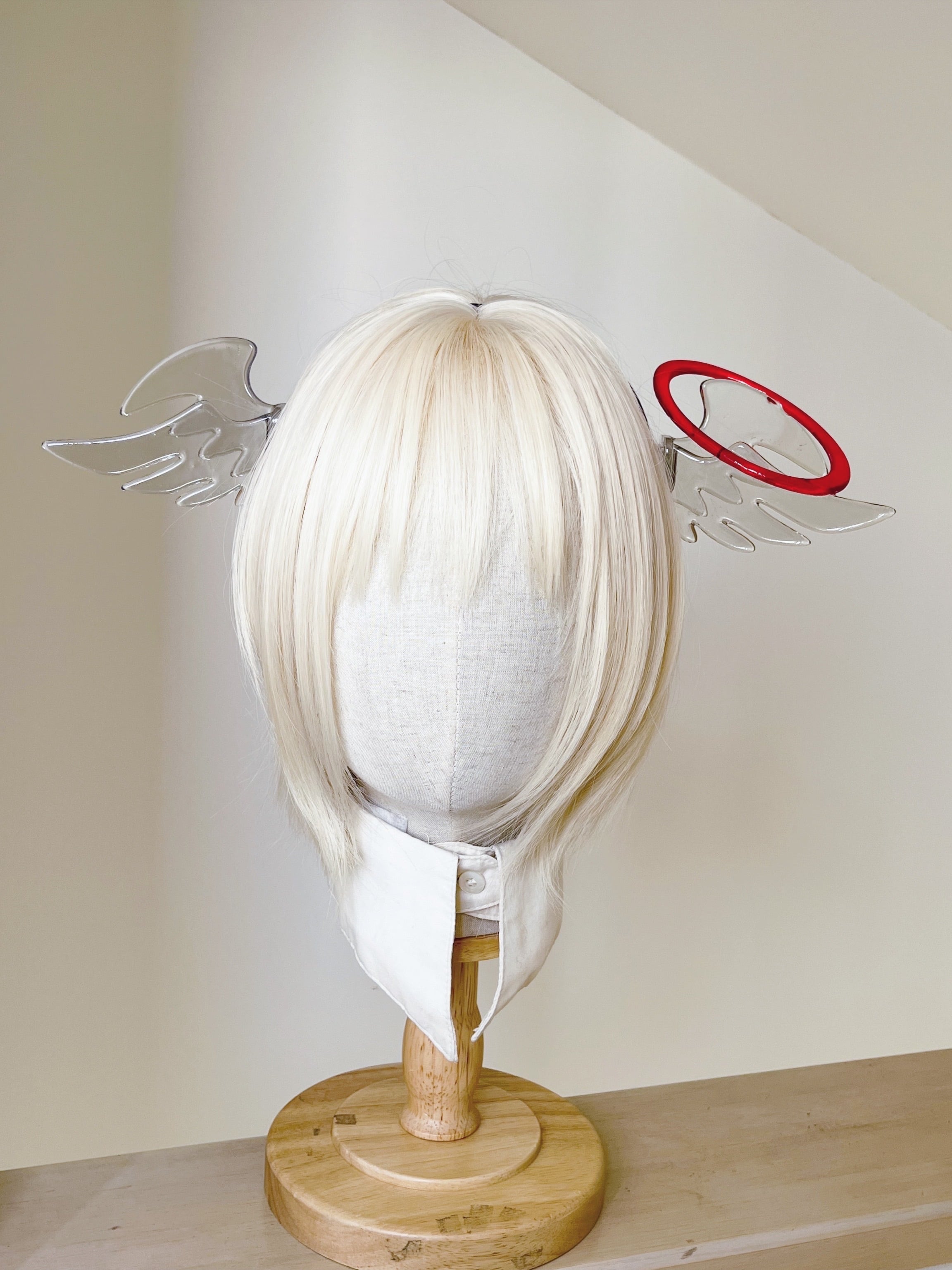 天使の羽カチューシャ 透明な羽×クリアレッドの輪