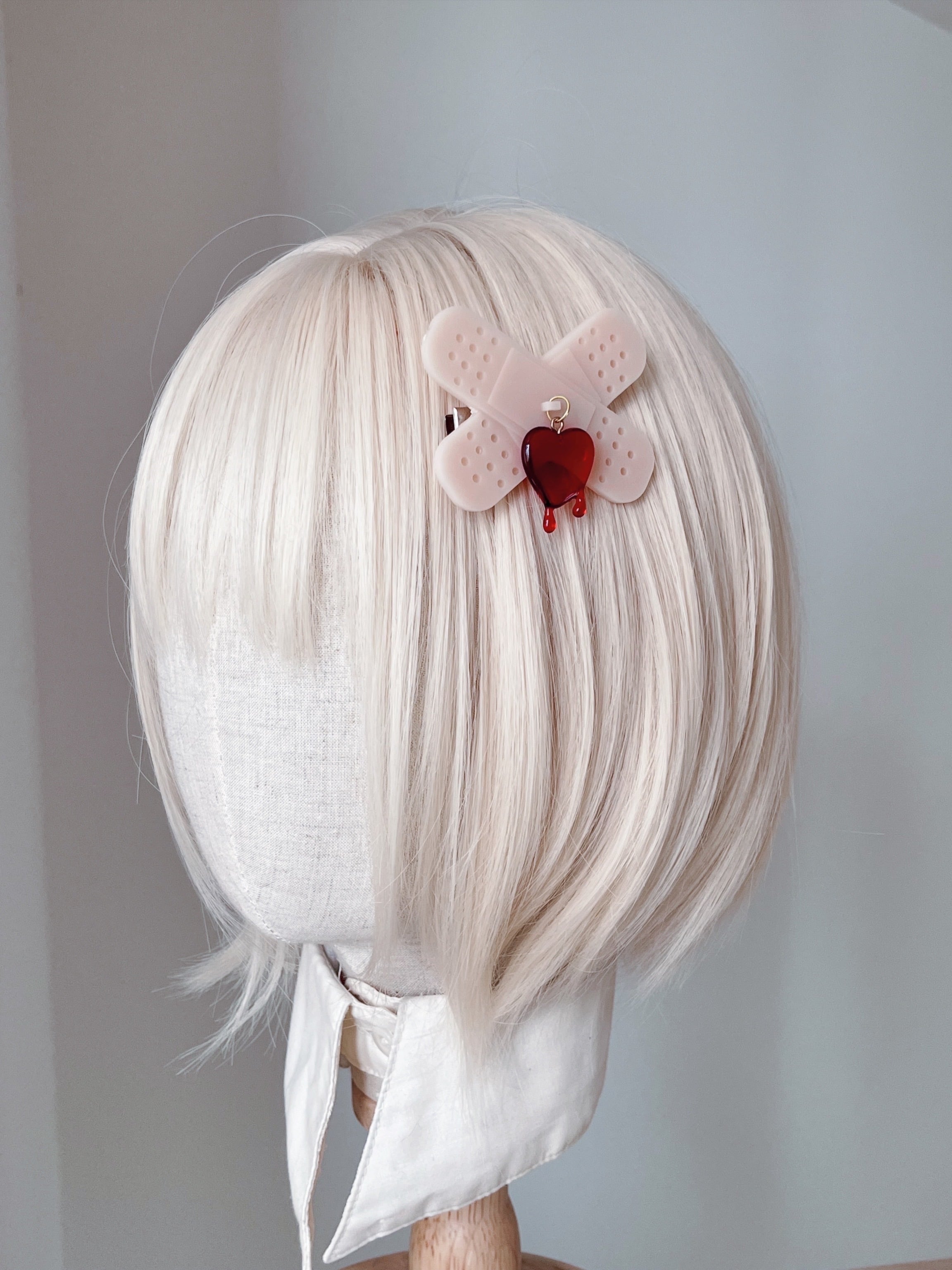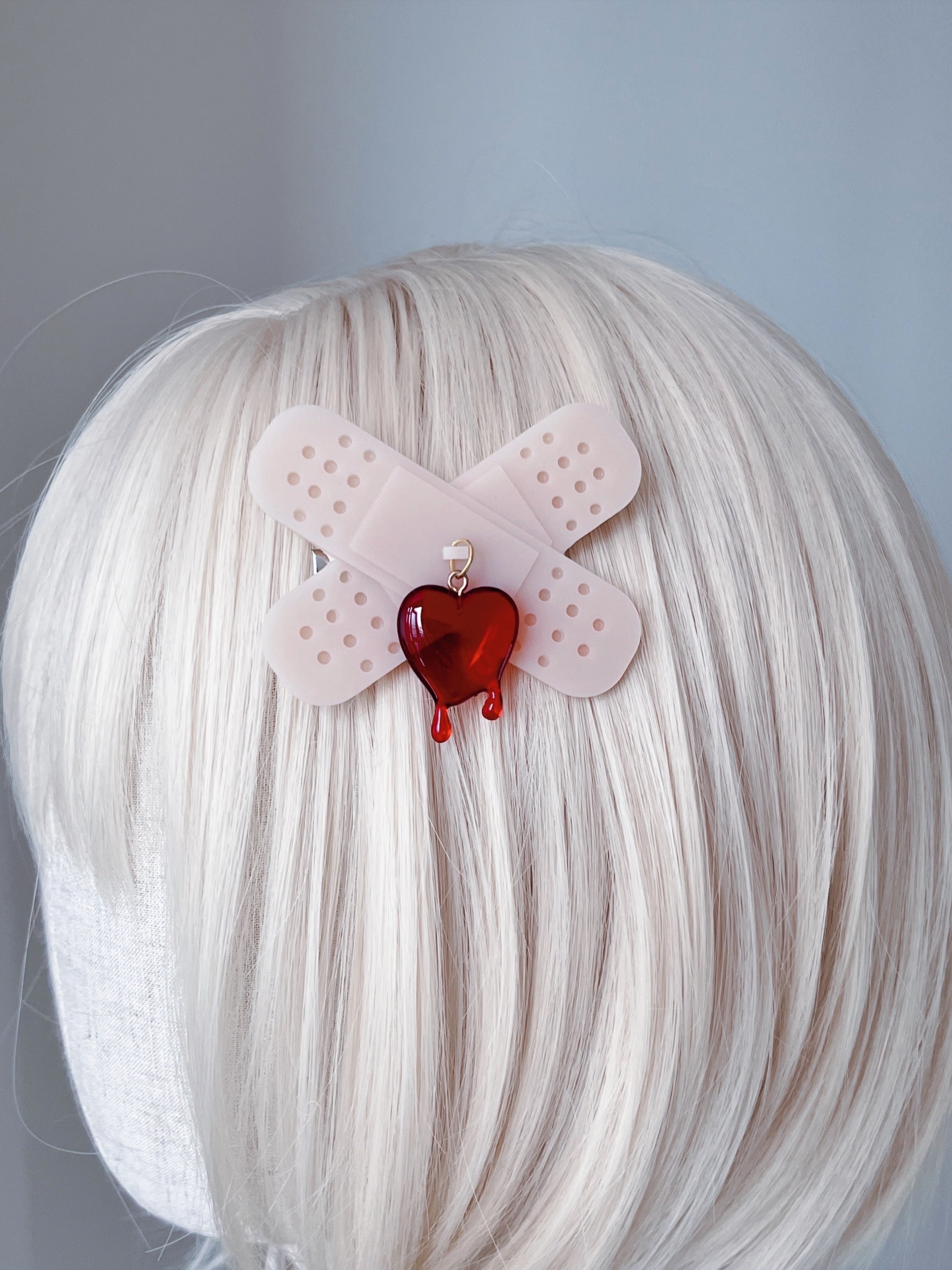 絆創膏ヘアクリップ 絆創膏カラー×赤いハート