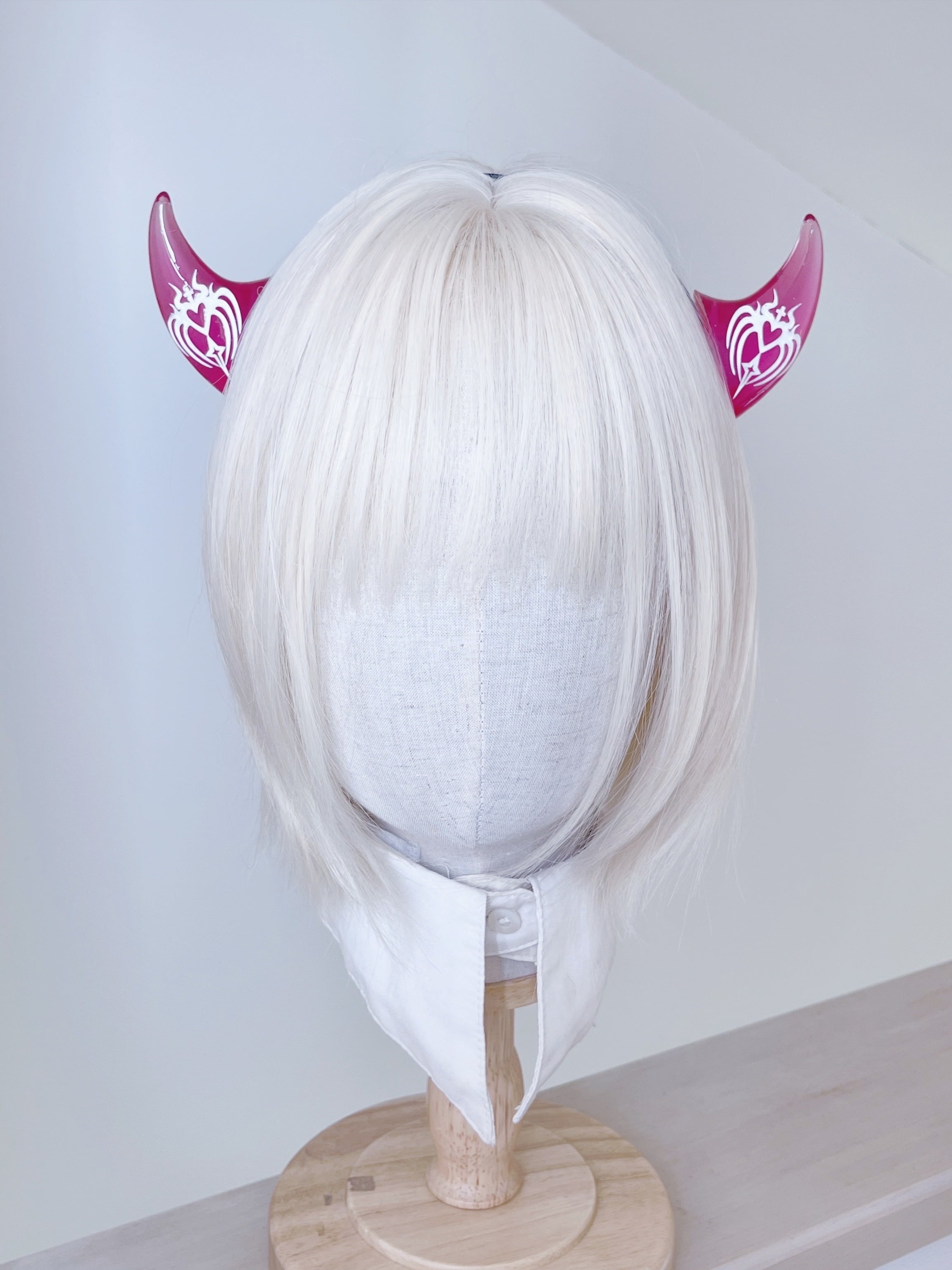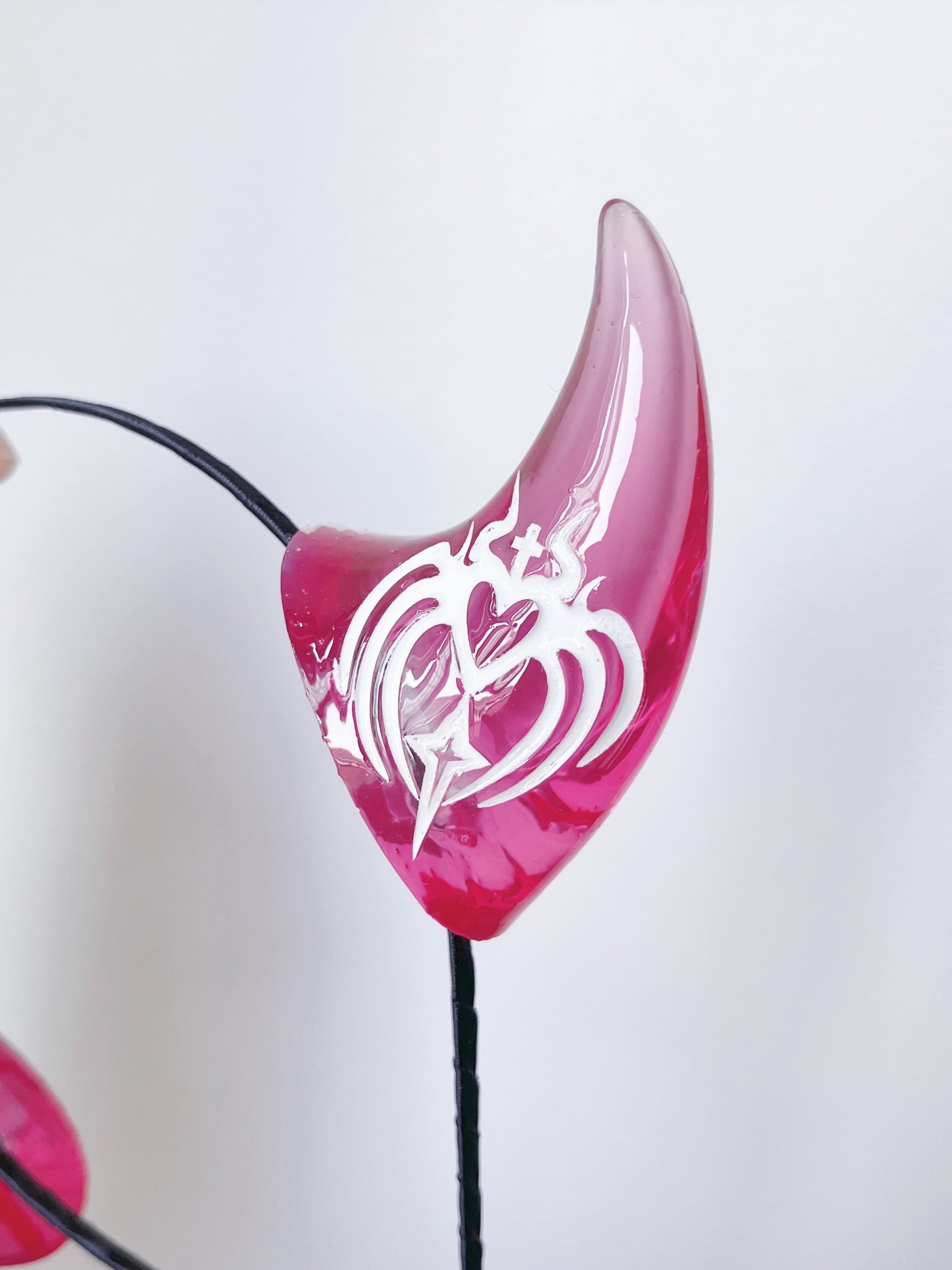 星を食べる蜘蛛の悪魔の紋章が刻まれたツノ クリアピンク×白